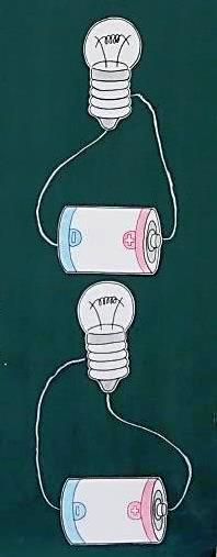 果たしてどのつなぎ方にするとあかりがつくのでしょうか?。実験開始!