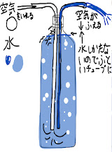 つよし:水の量は関係してる。僕は水が満パン(満タン)の時が一番強く飛び出すと思うんですけど,その理由は,空気が水を圧して,水がホースを通って出るんですけど,水が満パンの方が上にあるから,時間が短縮できるから。